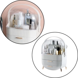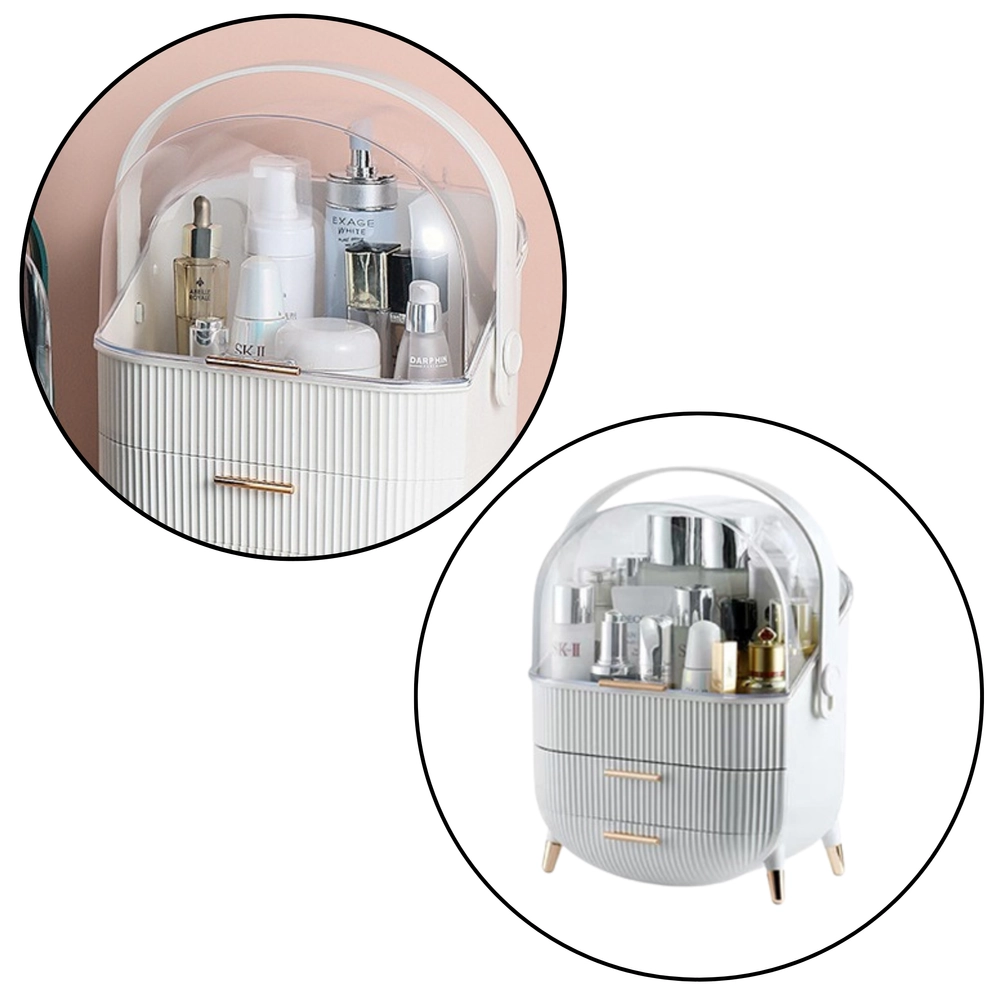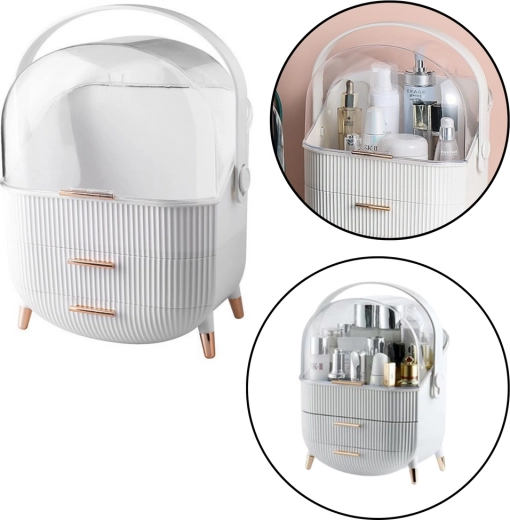 Organisatoren har en rumlig konstruktion på 37 x 25 x 18,5 cm og rummer nemt forskellige produkter: fra børster, øjenskygger og læbestifter til parfumeflasker, cremer og andre kosmetiske produkter. Det transparente låg beskytter indholdet mod støv og giver et hurtigt overblik uden at skulle åbne skuffer eller rum.