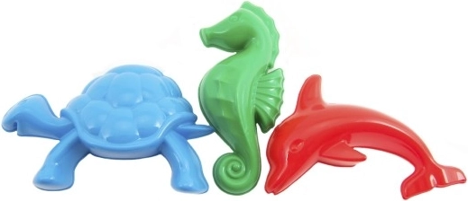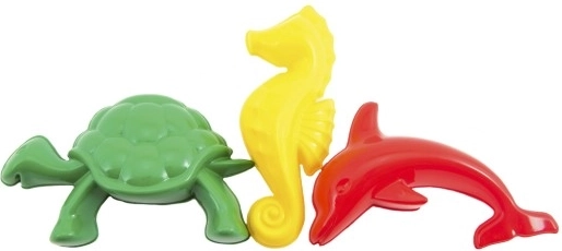 Lav flotte figurer på stranden, i sandkassen eller ved poolen med et sæt på tre sandforme. Takket være de klare farver og enkle former er formene perfekte til små børnehænder og understøtter finmotorik, kreativitet og leg i frisk luft.
