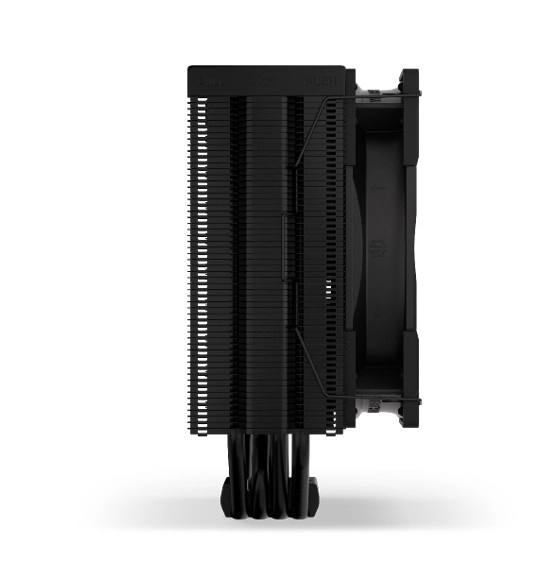Køleren Fera 5 Sort er udstyret med den prisvindende Fluctus 120 PWM blæser med valgfri semi-passiv tilstand, som arbejder sammen med fire varmeledende rør, der forbinder basen med en asymmetrisk radiator. Hvert element er designet til at levere klasseførende ydeevne uden forstyrrende støj.