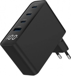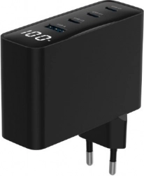 Universel GaN Oplader 100W 1xUSB-A 3xUSB-C Hurtig Opladning LCD sort