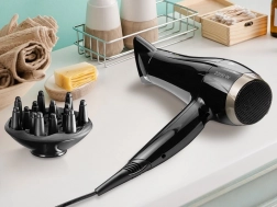 Koncentrator til præcis styling. Den fokuserede luftstrøm og den høje effekt på 2200 W gør det muligt at tørre hurtigt og forme frisyren præcist.