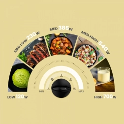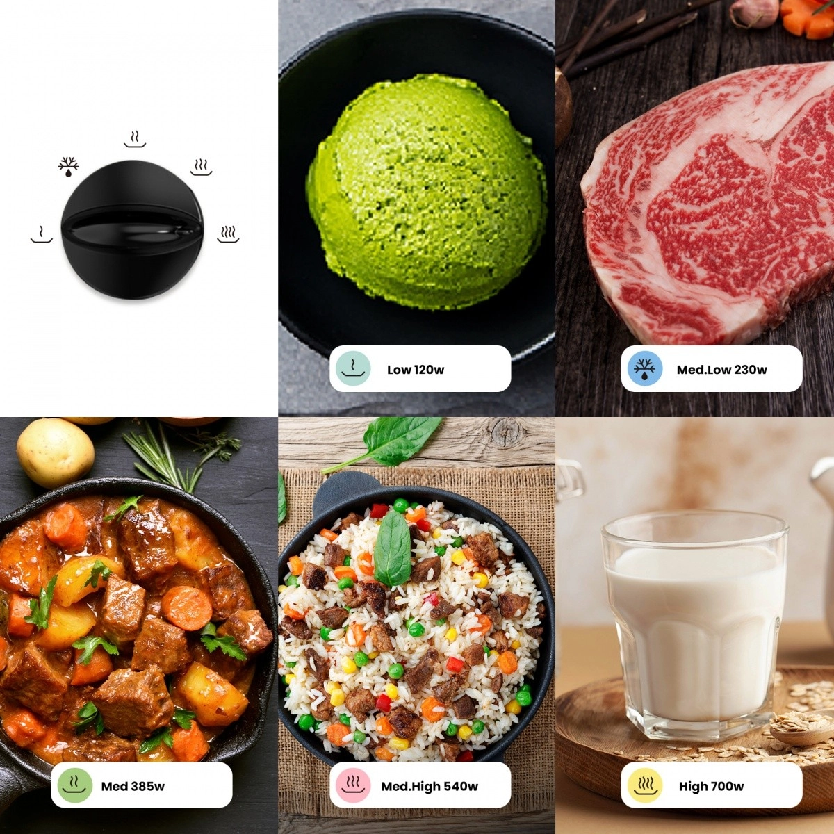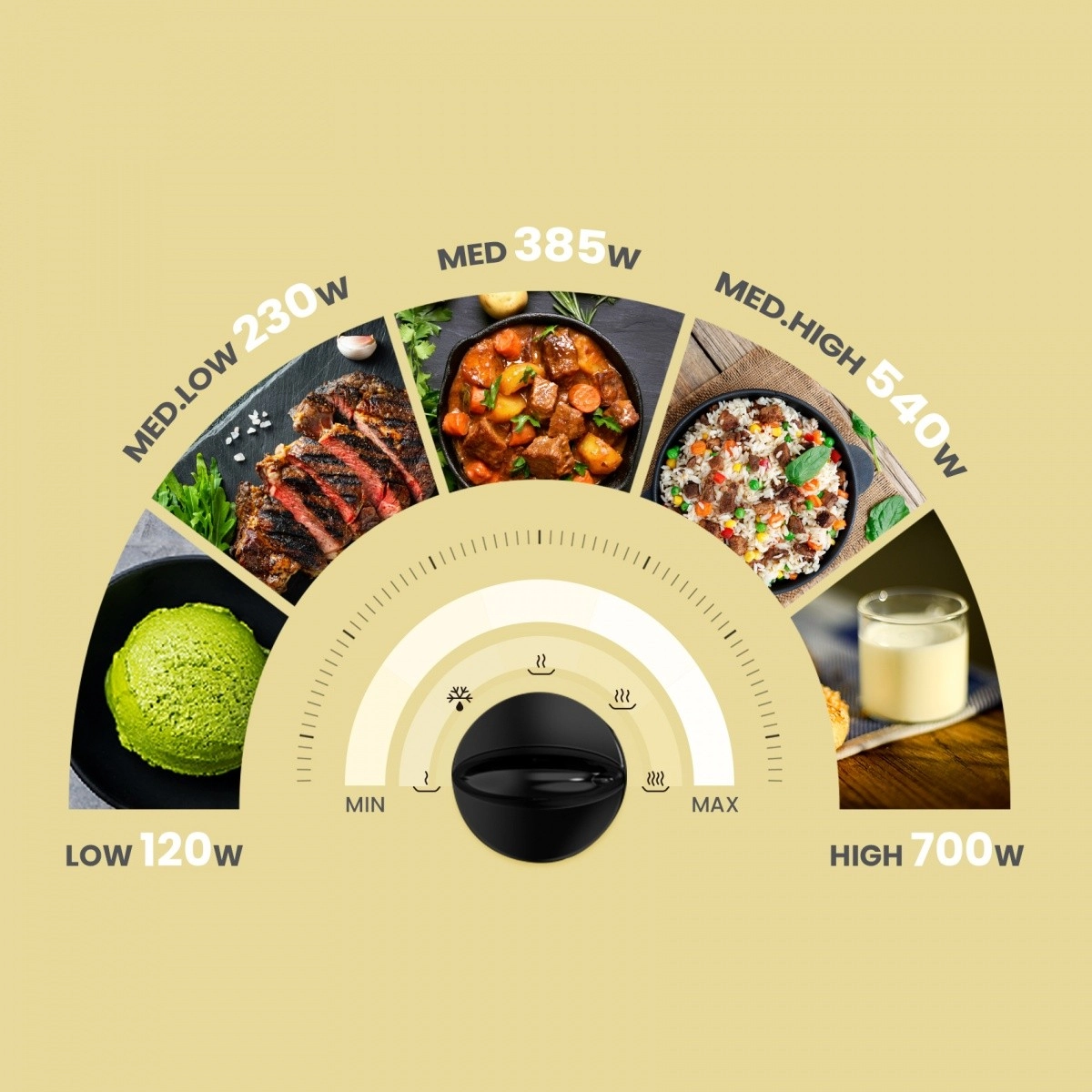 Med den nyeste Revolution Wave-teknologi er mikrobølgeovnen udstyret med MET, en førende transformer, der udmærker sig ved lavere vægt og bedre ydeevne.