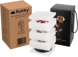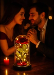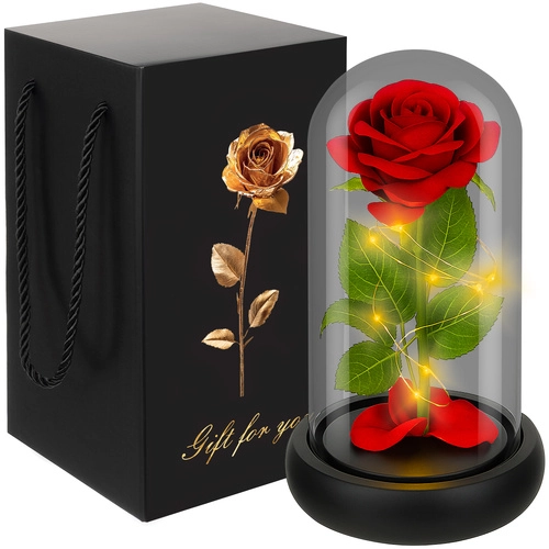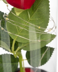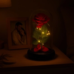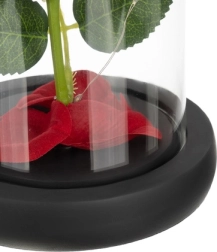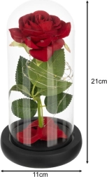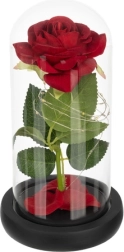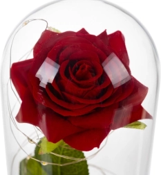 Den smukke rose er placeret i en kvalitetsglaskuppel og er designet til at bevare sin form og farve for evigt. Belysningen med LED-dioder skaber varmt hvidt lys, der giver rosen et exceptionelt look.