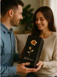 Leveres i en stilfuld sort gaveboks med design af en gylden rose og teksten 'Gift for you'.