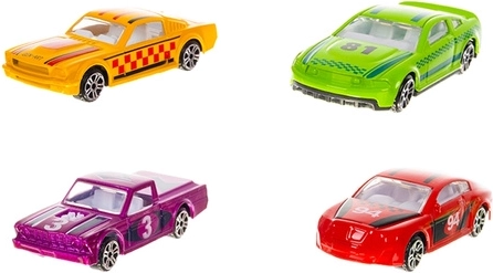 Hver bil har markante farver, tryk og numre, så børn nemt kan vælge deres favorit og udvide samlingen.