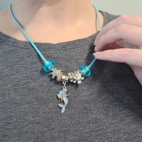 Kreativt sæt til fremstilling af smykker og armbånd for børn tilbyder mange farverige perler og vedhæng i forskellige former, der gør det muligt at skabe smukke armbånd og halskæder.