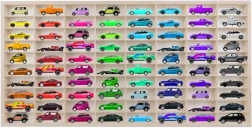 KRUZZEL træhylde til legetøjsbiler med 80 rum