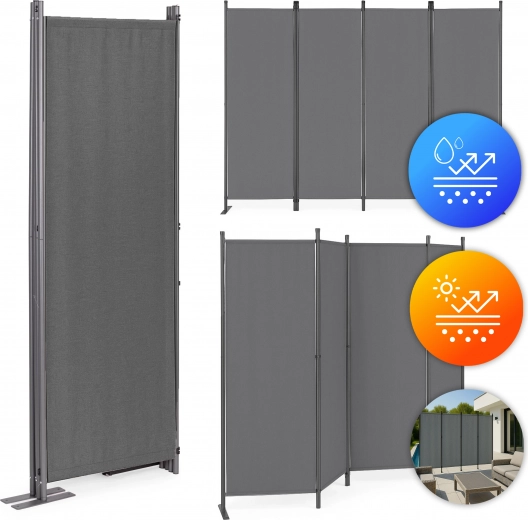 Den alsidige sammenfoldelige haveafskærmning MultiGarden er den ideelle løsning for beskyttelse og dekoration af udendørs rum. Den er perfekt til haver, terrasser eller altaner, og giver privatliv og vindbeskyttelse, mens den også fungerer som rumdeler. Takket være det holdbare stof 160 g/m² polyester, er afskærmningen bestandig over for UV og regn. Med den lette og sammenfoldelige konstruktion kan du nemt flytte og placere den, hvor der er behov. Den elegante grå farve tilføjer stil, hvilket gør skærmen både praktisk og æstetisk.