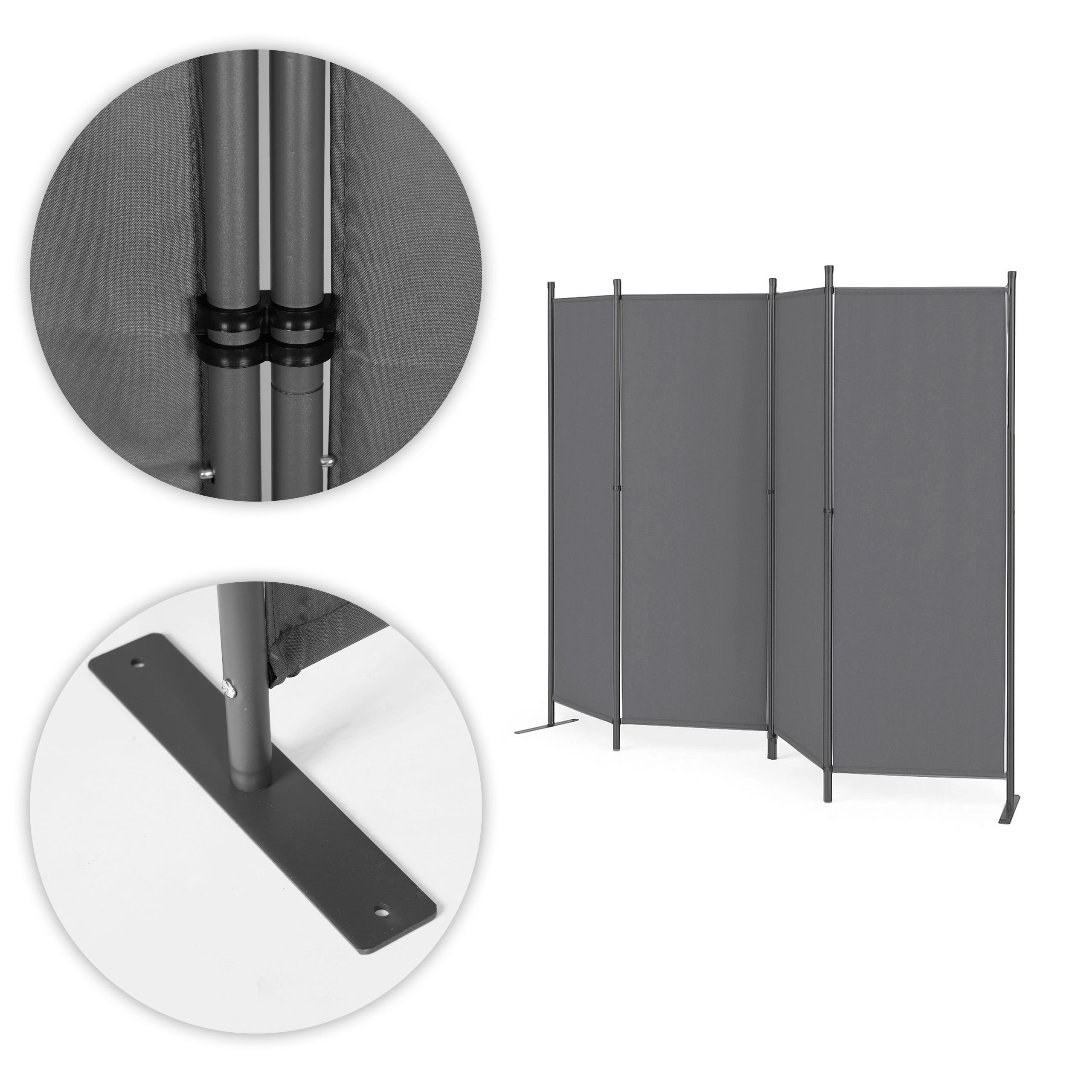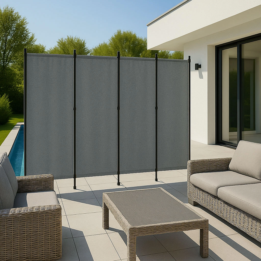 Robuste panel-samlinger gør det nemt at folde og udfolde afskærmningen, hvilket gør den nem at bruge i hverdagen. En stabil metalbase med praktiske forankringshuller, giver fremragende støtte til hele konstruktionen og forhindrer væltning, selv på ujævnt terræn.