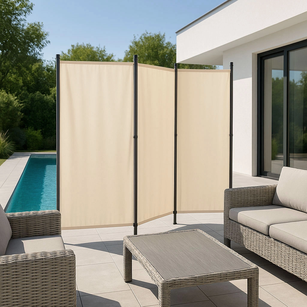 Den sammenklappelige haveskærm fra MultiGarden er en alsidig løsning til beskyttelse og dekoration af udendørsområder. Den passer perfekt i haven, på terrassen eller altanen, hvor den giver privatliv og læ for vinden og samtidig fungerer som rumdeler. Takket være holdbar polyester 160 g/m² er skærmvæggen modstandsdygtig over for UV-stråling og regn. Det lette, sammenklappelige design gør den nem at flytte og justere efter behov. Den elegante beige farve tilfører stil og forbedrer det æstetiske udtryk.