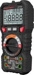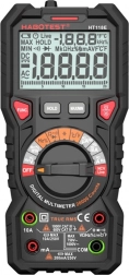 Multimeteret Habotest HT118E tilbyder måling af AC- og DC-spænding op til 1000 V, strøm op til 10 A, modstand op til 100 MΩ og frekvens op til 20 MHz. Du kan også teste dioder og kontrollere kredsløbskontinuitet.