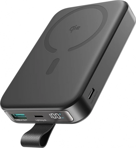 Powerbanken tilbyder multiladning takket være tre udgangsporte: USB-A, USB-C og trådløs, hvilket gør det muligt at oplade flere enheder samtidigt. Power Delivery-understøttelse sikrer op til tre gange hurtigere opladning sammenlignet med almindelige opladere.
