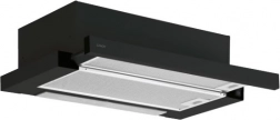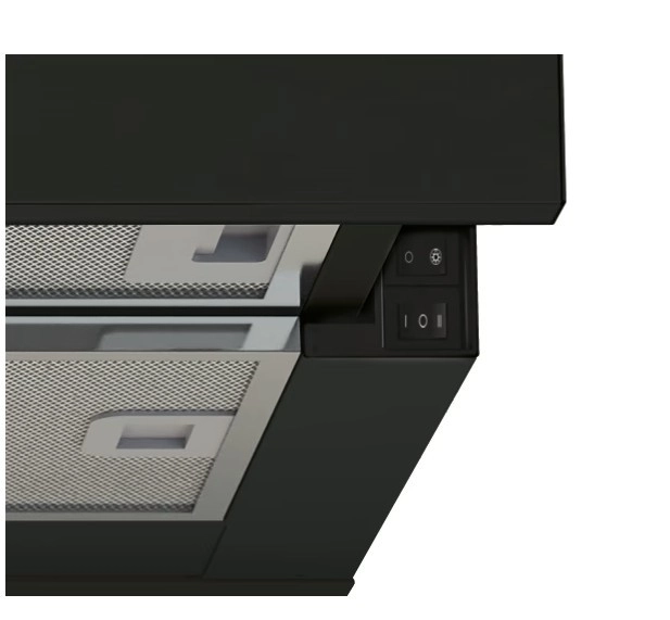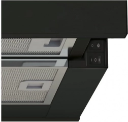 Udsugeren har et moderne sort og gråt design, som passer perfekt ind i ethvert køkken.