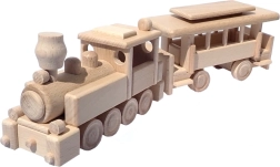 Toget er fremstillet af massivt bøg og behandlet kun med voks og polering. Det bevarer træets autentiske åretegning, er skånsomt og sikkert for børnehænder.
