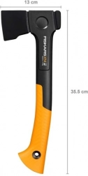 Universel økse Fiskars X14 er et kompakt værktøj designet til maksimal udnyttelse af kroppens ergonomi - godt afbalanceret, komfortabelt og ideelt til enhåndsbetjening.