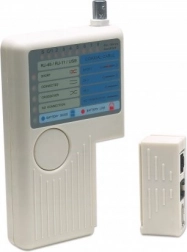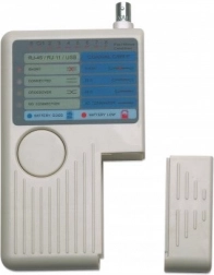 Denne 4-i-1 kabeltester tester effektivt RJ11-, RJ45-, USB- og BNC-kabler med et enkelt tryk på en knap. Den er udstyret med LED-dioder til at signalere forbindelse og eventuelle fejl.