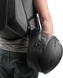 Rygsækken er udstyret med justerbare og behagelige stropper, som forbedrer aerodynamikken og forhindrer ridser på din hjelm. Dertil bidrager reflekterende elementer, som øger synligheden i al slags vejr. Den har et nemt afkoblingssystem med mulighed for at låse én skulderstrop op for let af- og påtagning.