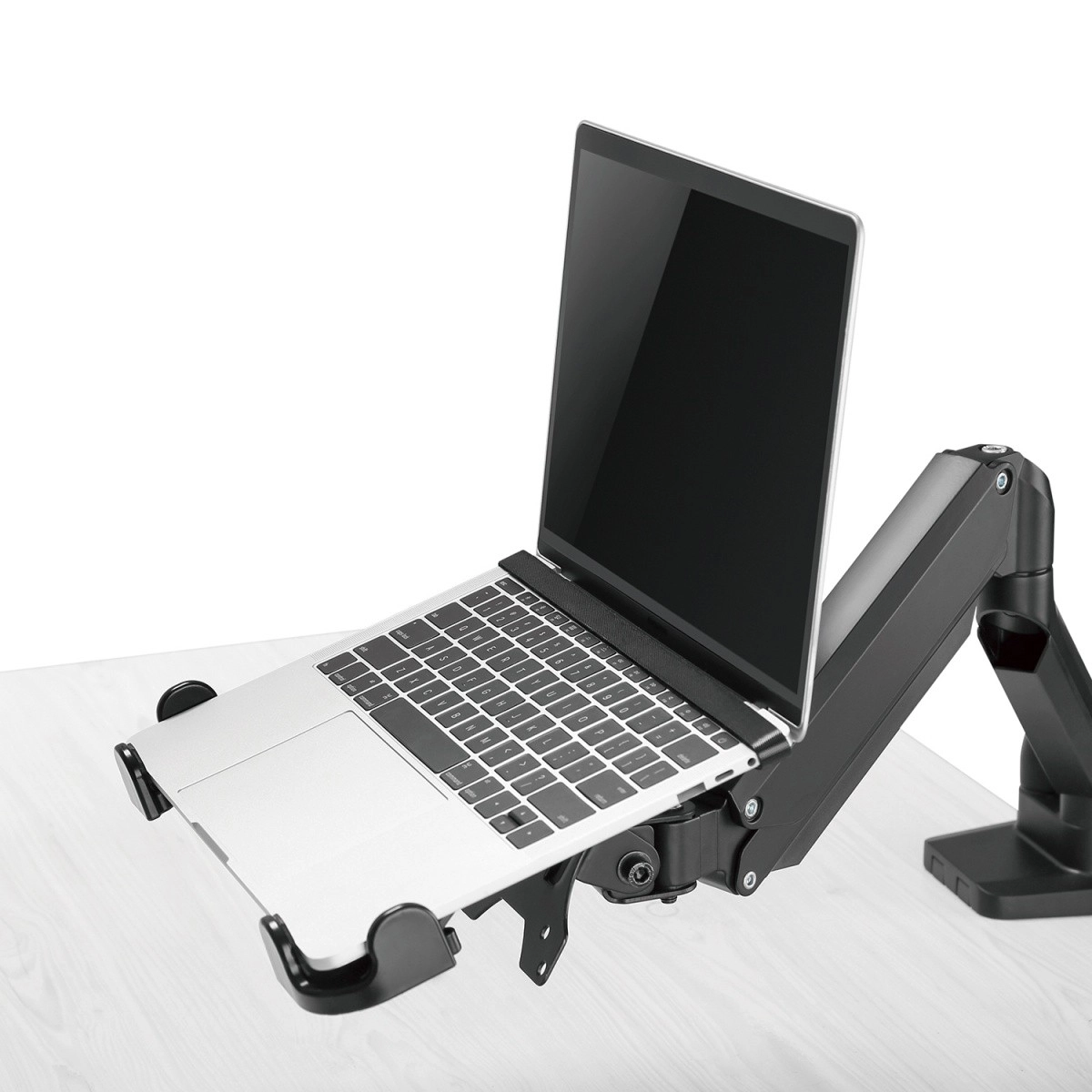 Justerbar arm gør det muligt at tilpasse holderen til bærbare computere med skærmstørrelser fra 11" til 17" for maksimal komfort og effektivitet.