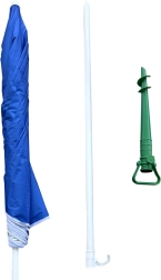 Den skarpe spids og robuste konstruktion gør det hurtigt at forankre i sand eller jord og holder paraplyen solidt på plads.
