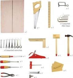 Giv dit barn glæden ved at skabe med denne praktiske værktøjskuffert. Hvert stykke værktøj er omhyggeligt lavet af kvalitets træ og metal for at holde til de nysgerrige hænder hos en lille gør-det-selv’er.