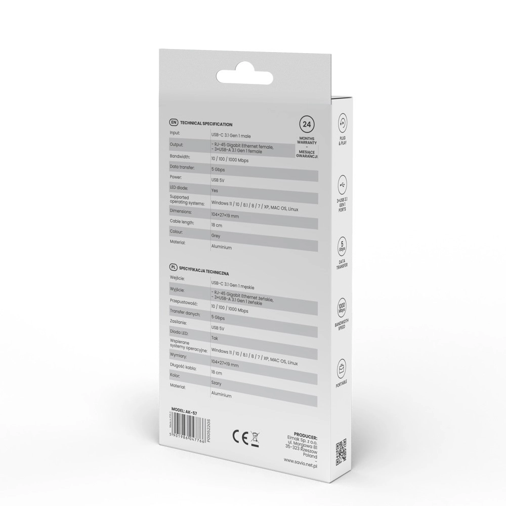 Hub Savio er den ideelle partner til bærbare og stationære computere med mangel på USB-A-porte. Tilslut op til tre ekstra perifere enheder som eksterne drev, tastaturer eller mus og nyd enkel og hurtig tilkobling.