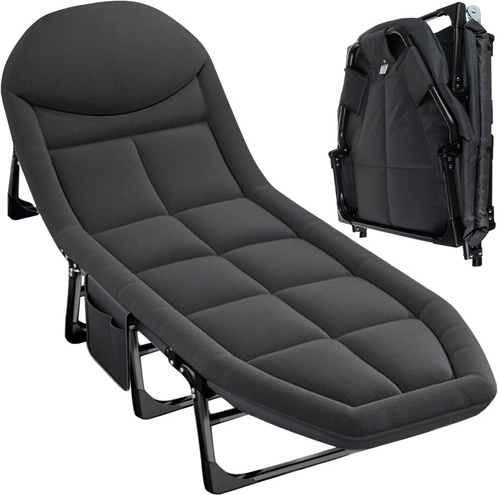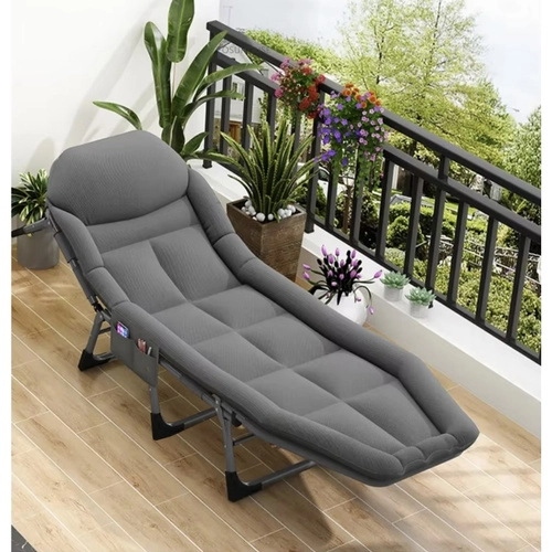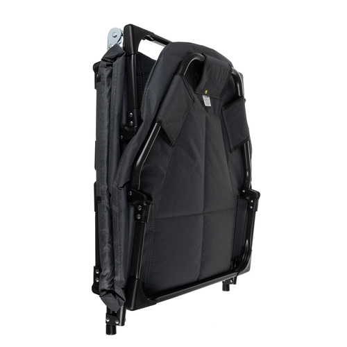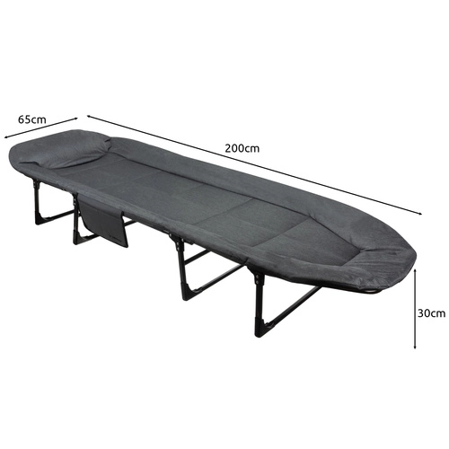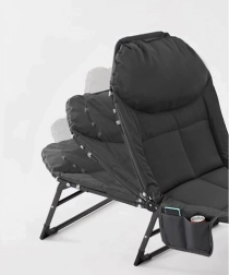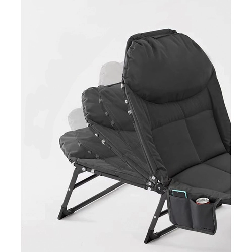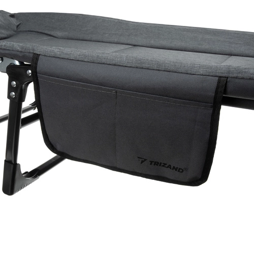 Når den er sammenklappet, er sengen kompakt og let at transportere, hvilket gør den nem at bære og opbevare. En praktisk sidelomme sørger for, at dine personlige ejendele som telefon eller bog altid er inden for rækkevidde.