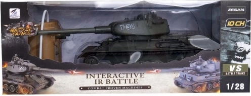 Tank T-34/85 med en længde på 33 cm vil glæde enhver dreng. Kører på batterier, med genopladelig batteripakke, med lyd og lys, 27 MHz, i æske.