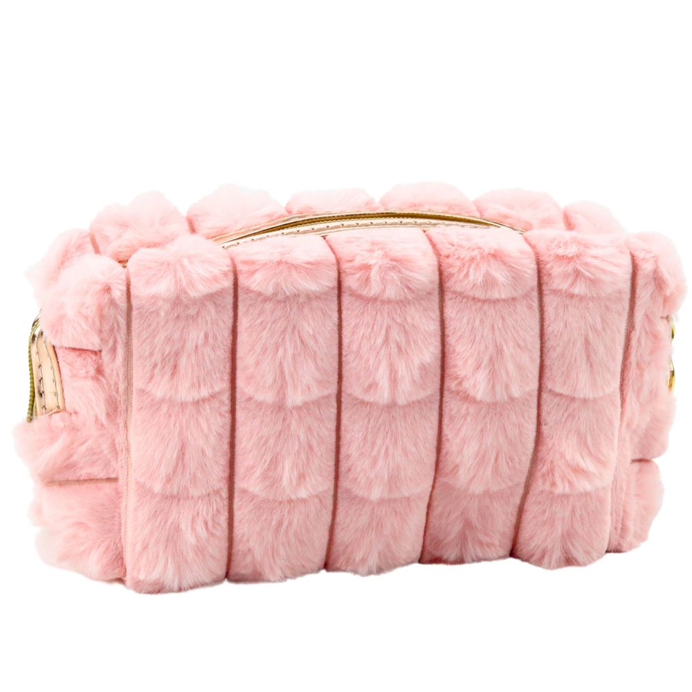 Elegant og blød at røre ved, denne plysbetrukne kosmetiktaske er det ideelle tilbehør til hverdagen. Den er lavet af et blødt, plysset materiale i en subtil rosa nuance, som ikke bare er smuk at se på, men også udmærker sig ved sin praktiske anvendelighed. Det moderne design matcher tidens trends og er udstyret med en skinnende lynlås og en dekorativ rem i farven rosaguldfinish.