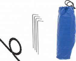 I pakken finder du transportpose, pløkker og barduner til sikring i blæst. Montering med klassisk jordspids er hurtig og pålidelig.