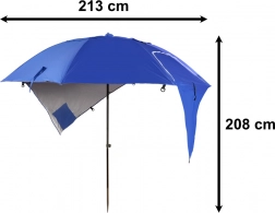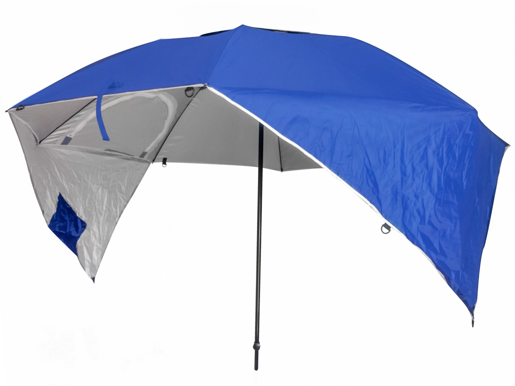 Sidepaneler skaber en effektiv barriere mod vind, sand og nysgerrige blikke. Parasollen kan på et øjeblik forvandles til en læskærm.