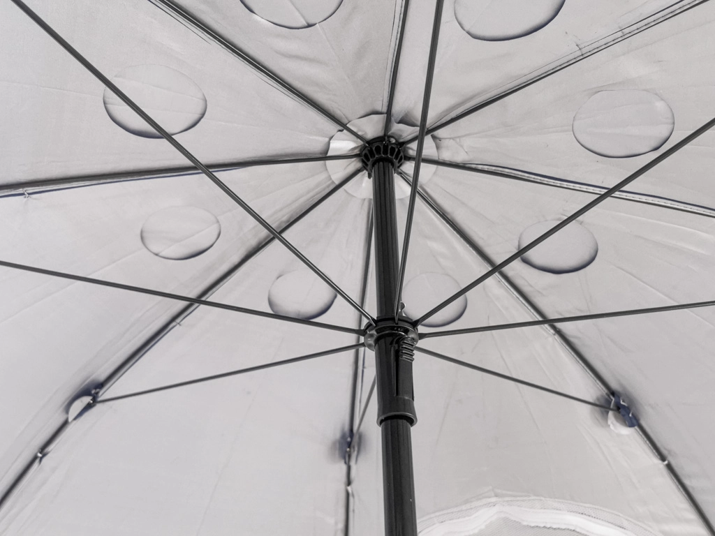 Leder du efter en alsidig løsning til varme dage? Denne sammenklappelige parasol med læskærm giver ekstra bred skygge, vindbeskyttelse og diskret afskærmning. Stoffet med indre sølvlag reflekterer UV‑stråling effektivt, mens topventilation forbedrer luftstrømmen og reducerer overophedning.