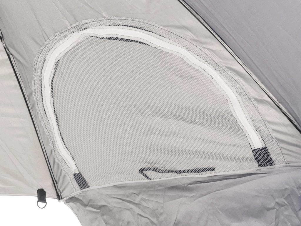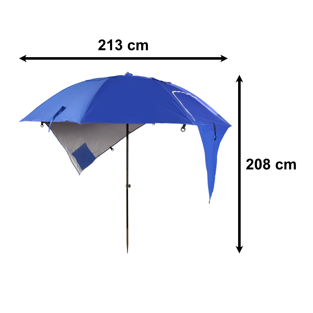 Med sidevægge får du mere komfort og privatliv på stranden og i haven. Nem montering med klassisk jordspids, og stabiliteten sikres af pløkker og barduner i pakken. Alt kan nemt opbevares i transportetui med bærestrop.