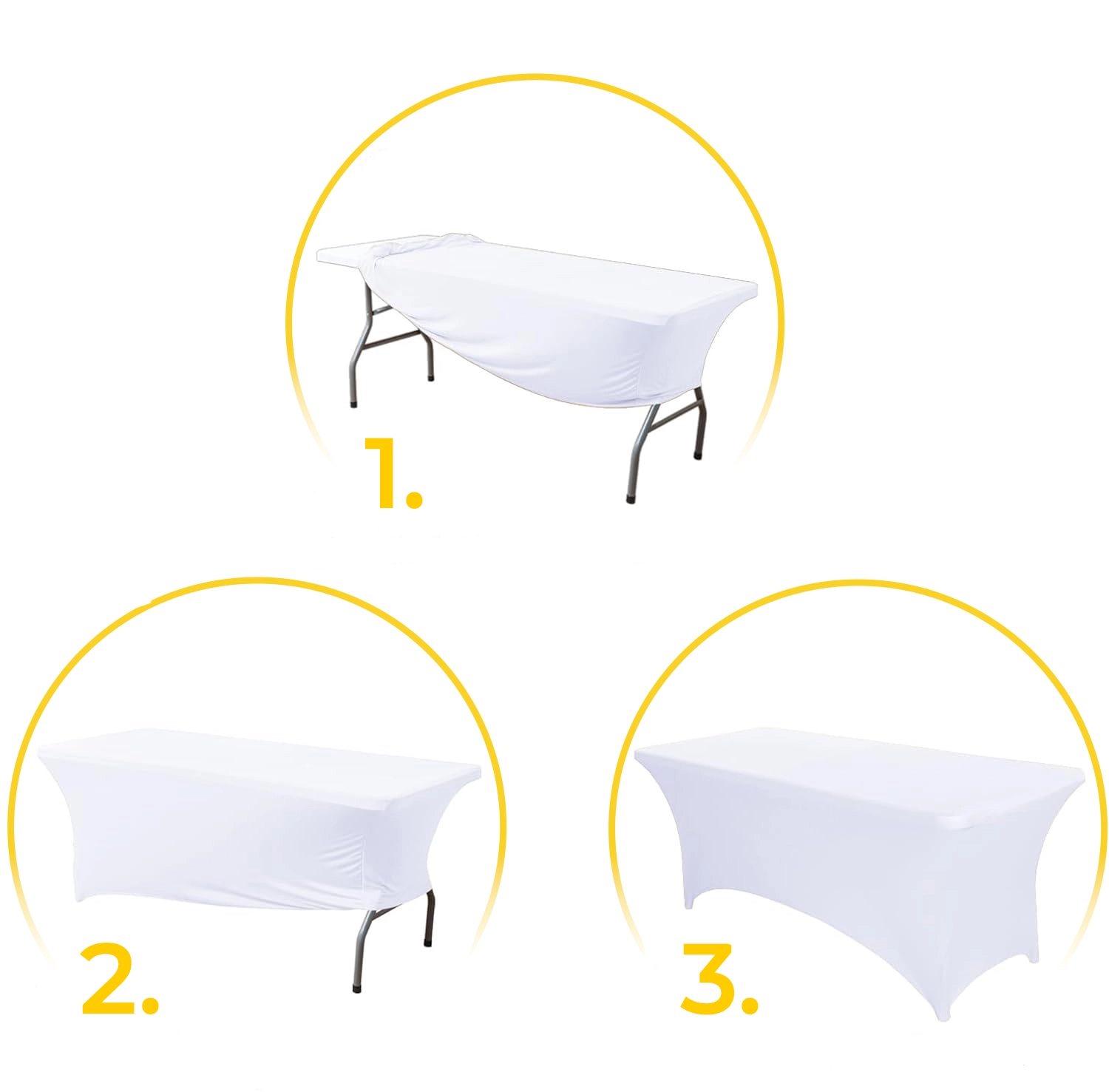 Den elastiske dug fra MultiGarden forvandler dit bord til et stilfuldt dekorativt element til enhver lejlighed. Den er ideel til bryllupskageborde, håndværksmesser eller catering ved firmabegivenheder. Takket være det strækbare stof er den nem at montere og fastgøre til bordbenene, hvilket giver et rent og elegant look.