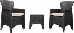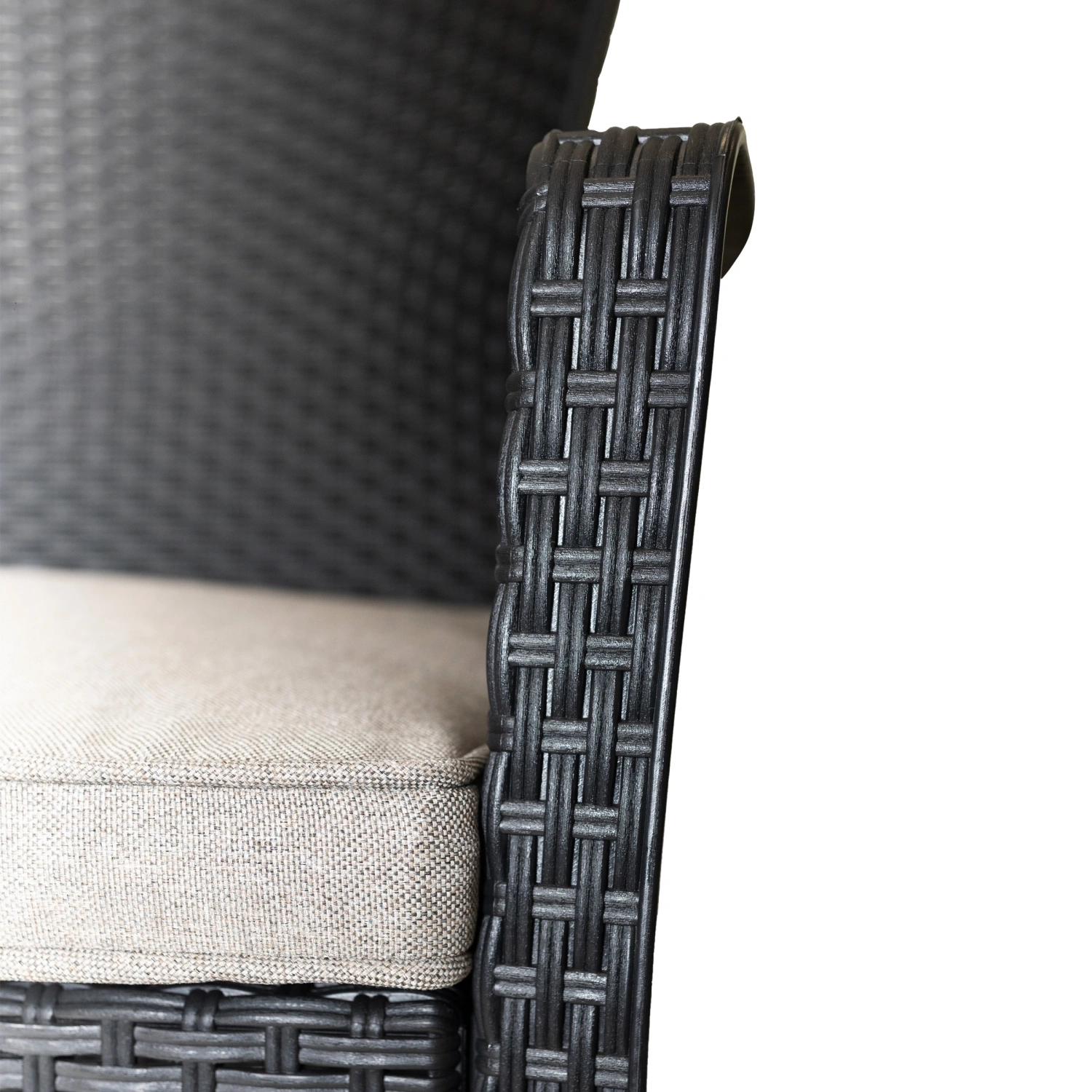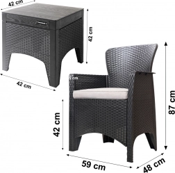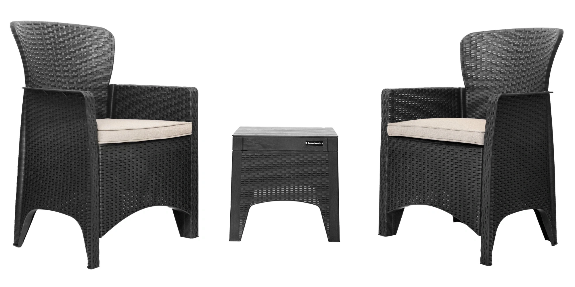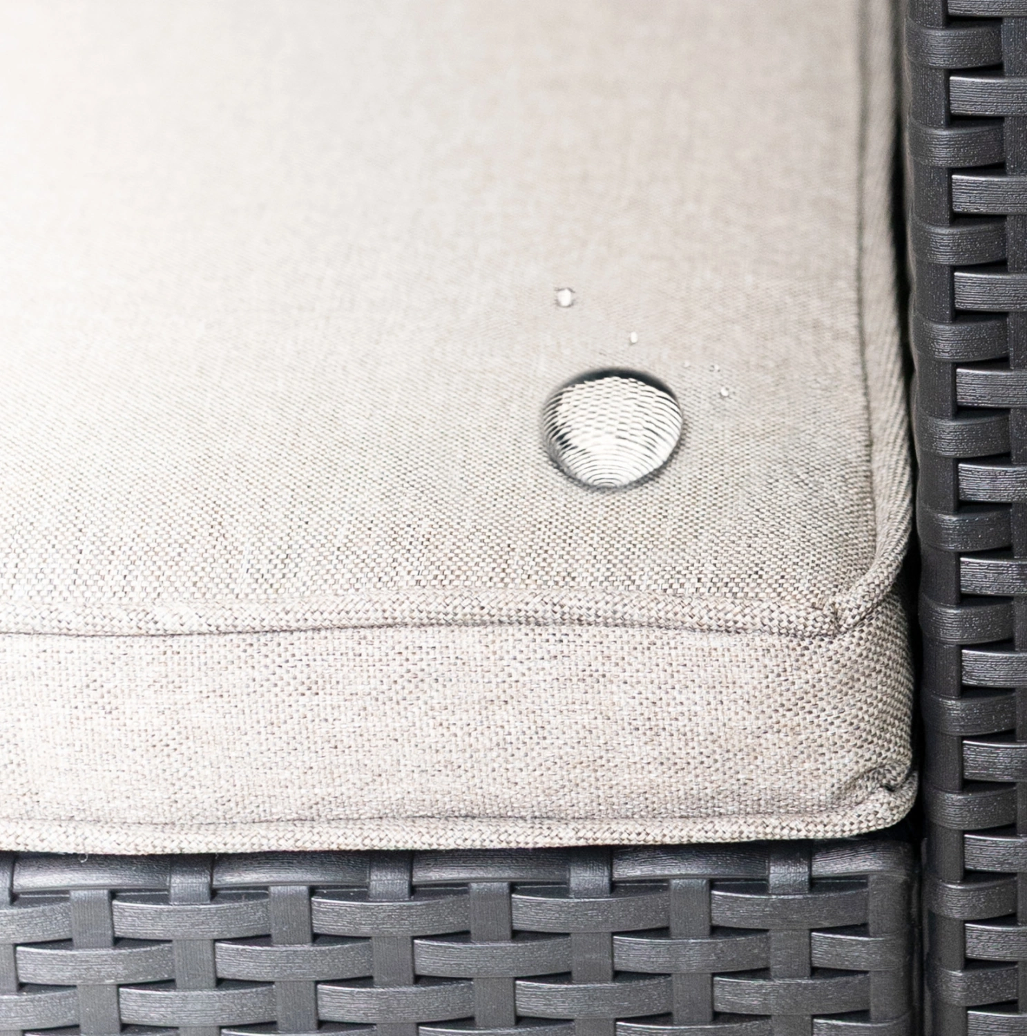 Det gennemtænkte design byder på vandafvisende hynder, som beskytter mod fugt og er lette at rengøre. Konstruktionen er lavet af holdbar polypropylen med en overfladebehandling i technorattan-stil, som giver et elegant, moderne udtryk og modstandsdygtighed over for UV-stråling og regn. Den glatte overflade er nem at rengøre og bevarer sit udseende sæson efter sæson.
