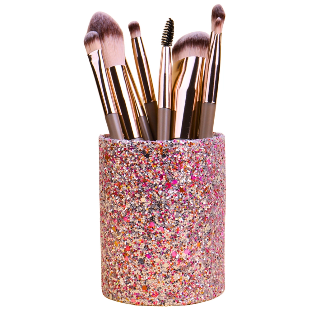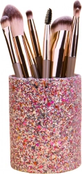 Fremstillet af holdbar plast og dækket med skinnende brokade er dette bæger en iøjnefaldende og elegant løsning. Det er ideelt til opbevaring af makeupbørster, eyelinere, mascaraer, konturpenne og andre små kosmetiske tilbehør.