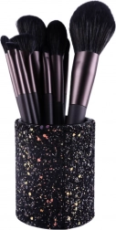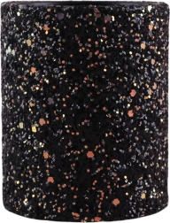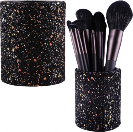 Fremstillet af holdbart materiale og dækket af skinnende glimmer, hvilket tilfører elegance og praktisk anvendelighed. Bægeret er ikke kun velegnet til makeupbørster, men også til eyelinere, mascaraer, konturpenne og andet lille kosmetisk tilbehør. Takket være den robuste konstruktion og fugtbestandigheden er det ideelt til brug på badeværelset.