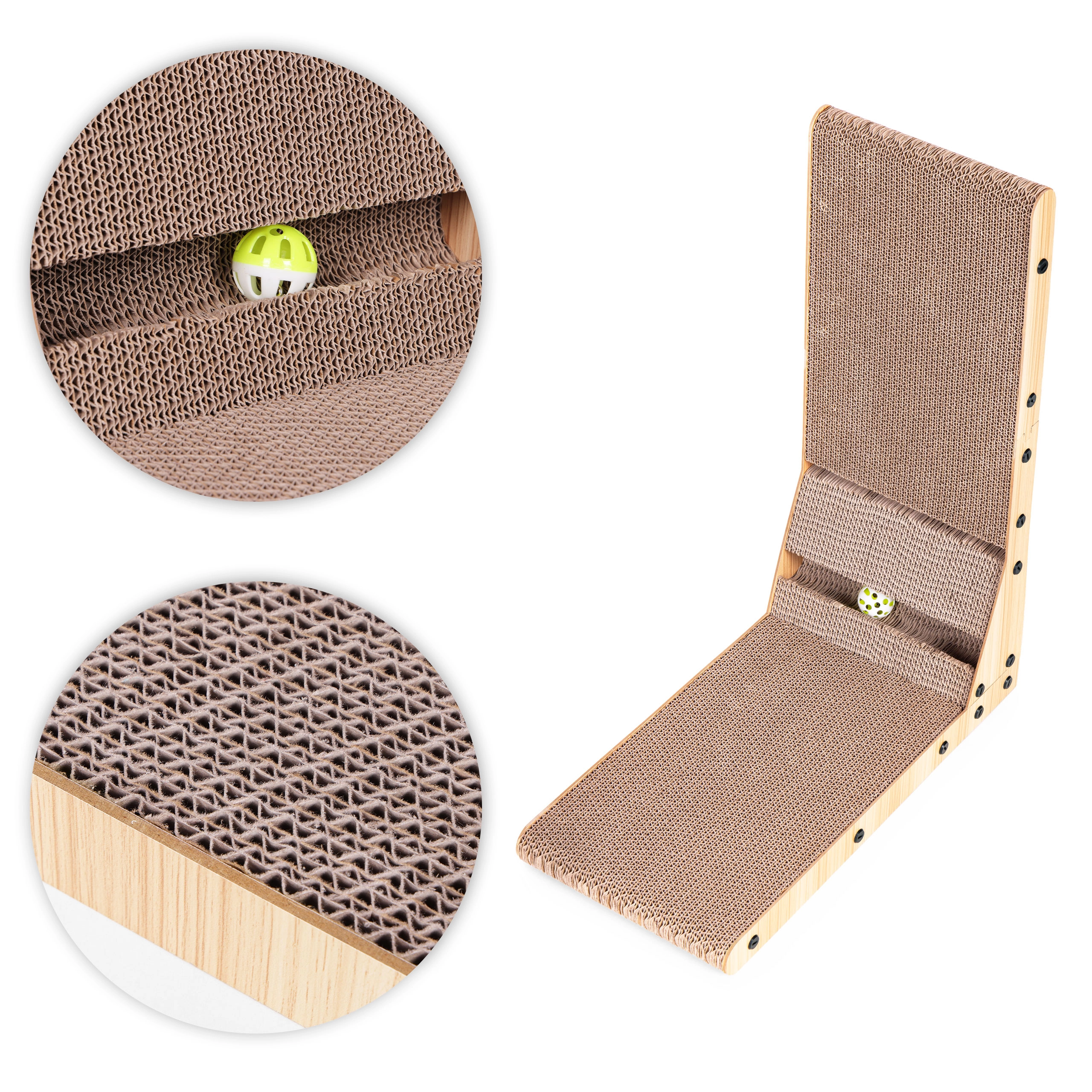 Det hjørneformede papkradsebræt fra Petsi er ideelt til katteejere, der vil give deres kæledyr komfort og samtidig beskytte hjemmet mod skader. To-niveaus L-form lader katte lege og slappe af. Produktet understøtter kattens naturlige adfærd, reducerer stress og hjælper med at forbrænde overskydende energi.