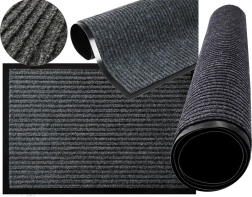 Denne grå gummierede måtte er designet til daglig brug i lejligheder, kontorer og kommercielle miljøer. Skridsikkert gummi sikrer stabilitet på forskellige gulvtyper, mens holdbare syntetiske fibre med riflet struktur pålideligt fjerner sand, støv og fugt fra fodtøj.