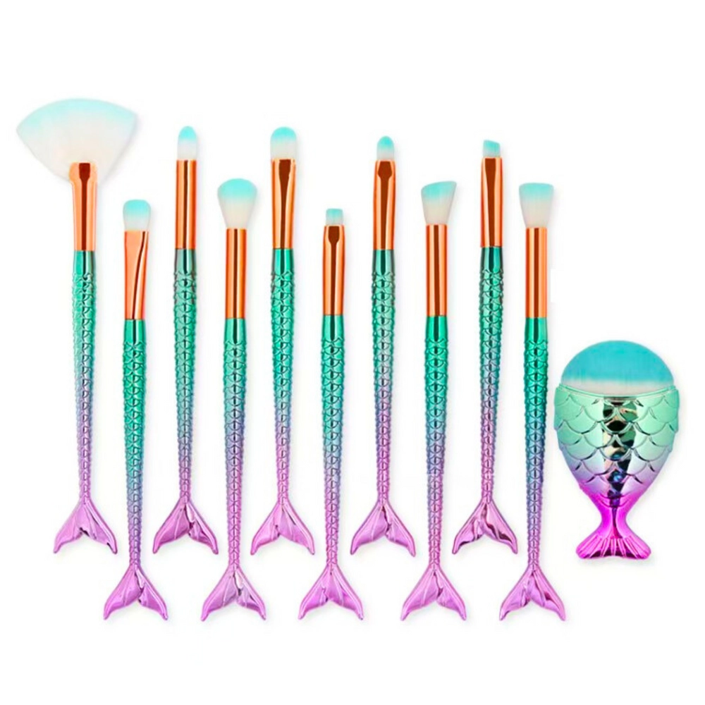 Denne pakke indeholder børster til alle faser af makeup – fra påføring af foundation, blending af øjenskygge til præcis contouring. Bløde, syntetiske hår er skånsomme mod huden, og de ergonomiske, regnbuefarvede skafter i havfruehaleform ligger perfekt i hånden og pynter samtidig i enhver makeup-taske.