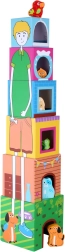 Dette charmerende stabeltårn af robuste papklodser og trædyr lærer børn at ordne størrelser, vurdere plads og øve fingerfærdighed. Klodserne bygges fra størst til mindst til et stabilt tårn på op til ca. 58 cm, og via åbningerne i klodserne lægger børn de rigtige dyr i.