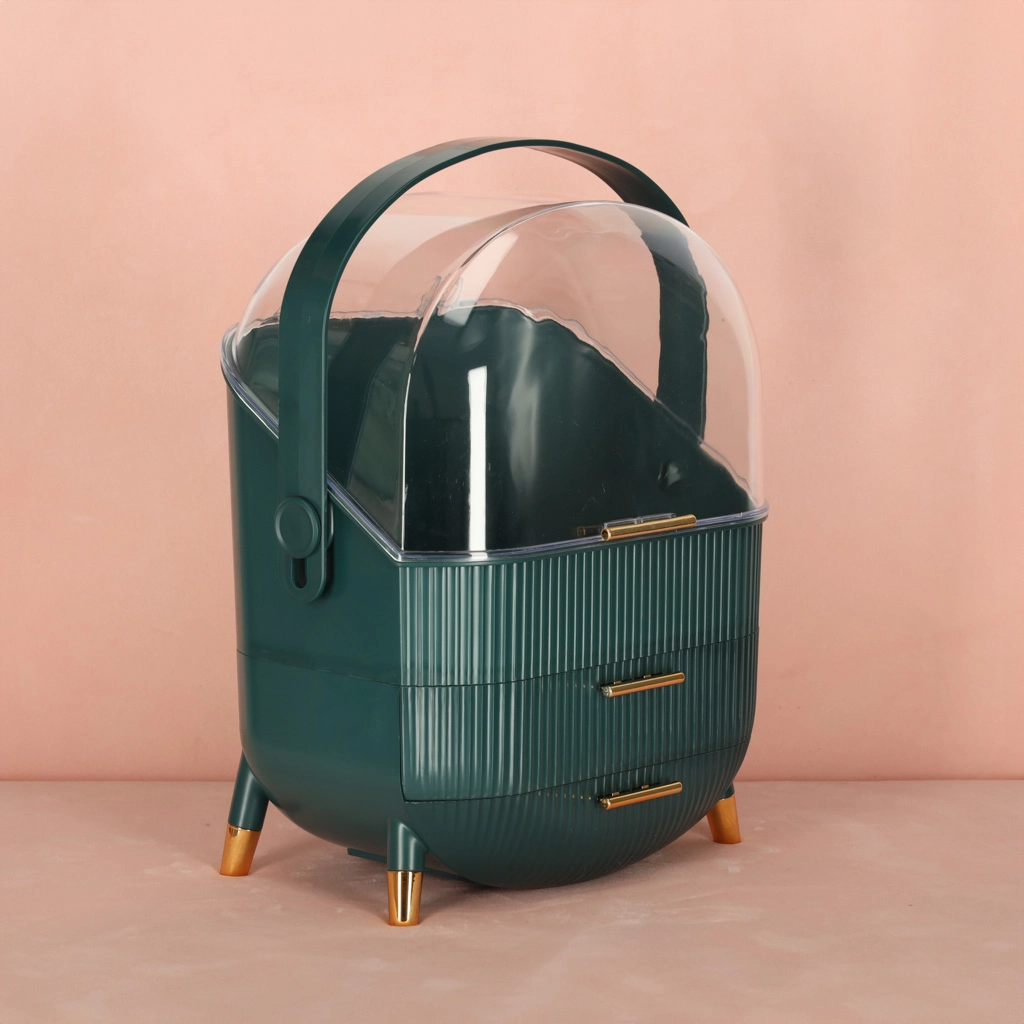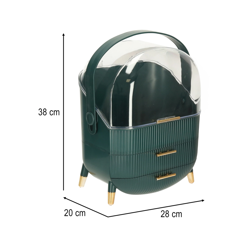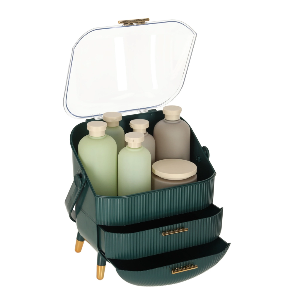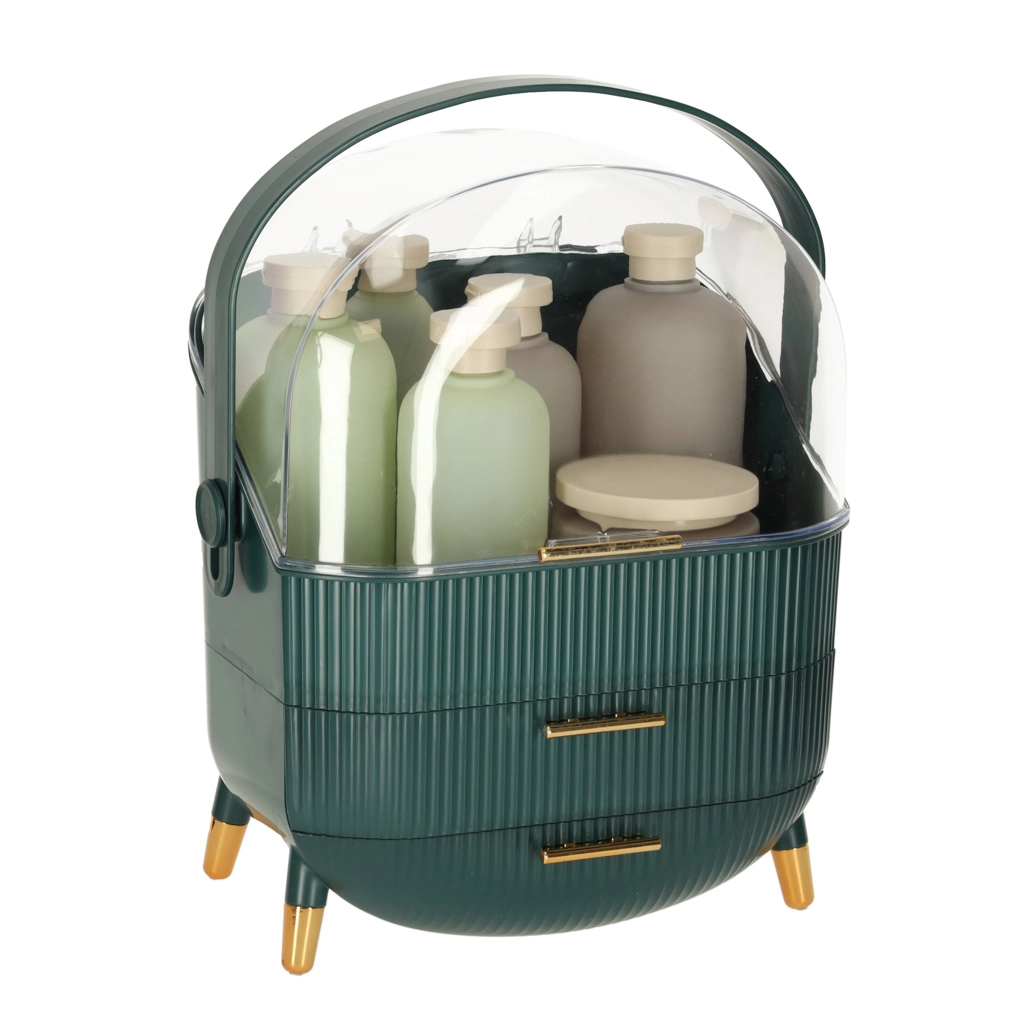 Vælg den grønne kosmetikorganizer med skuffer og tilføj overblik og skønhed til din livsstil. Med den kan både du og dine nærmeste nyde fordelene ved orden og et flot udseende.