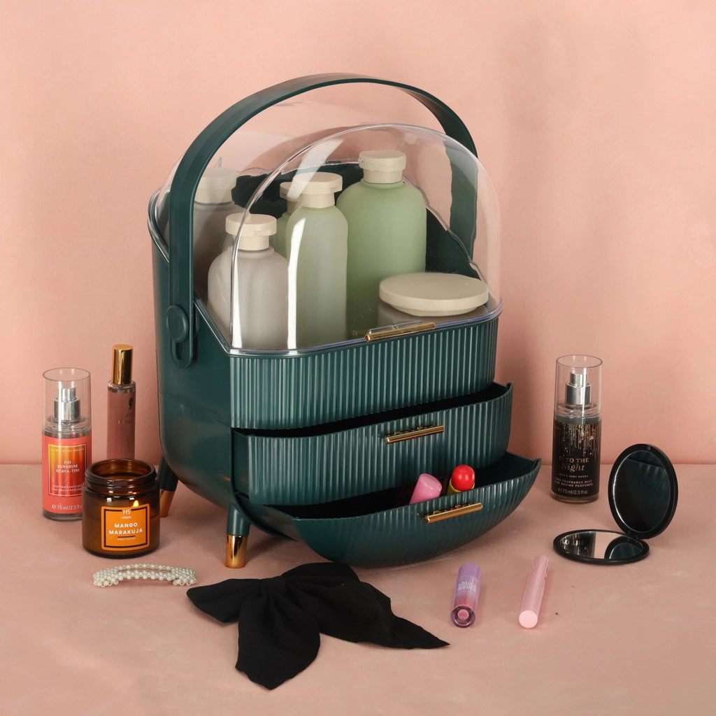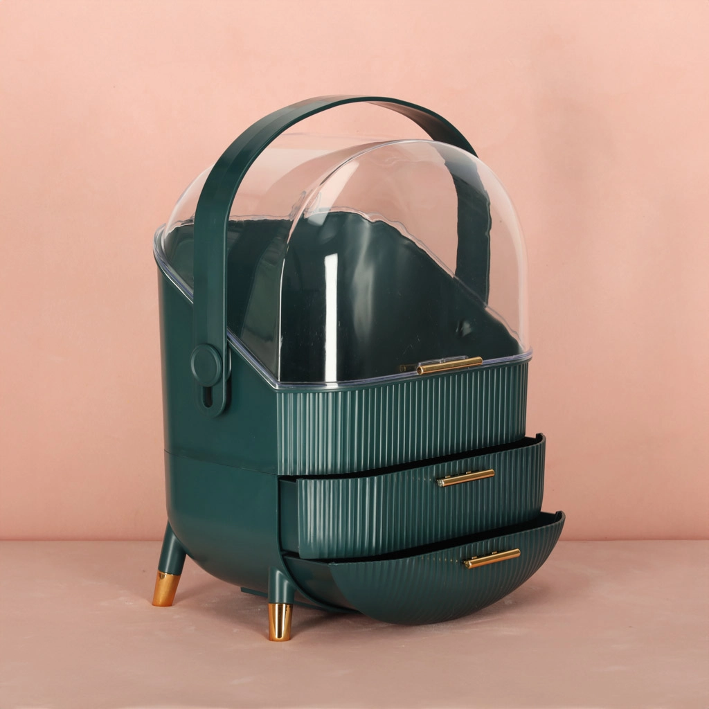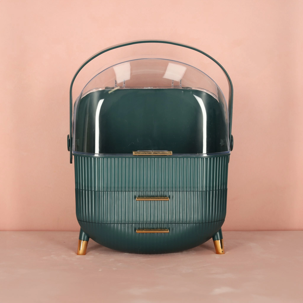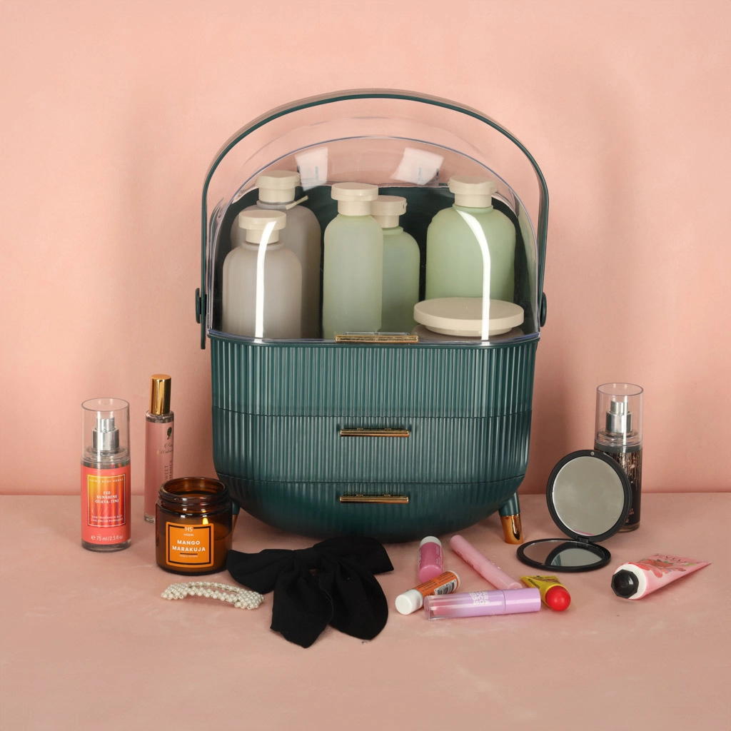Vælg den grønne kosmetikorganizer med skuffer og tilføj overblik og skønhed til din livsstil. Med den kan både du og dine nærmeste nyde fordelene ved orden og et flot udseende.