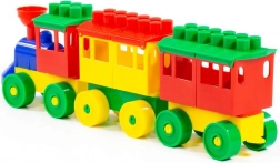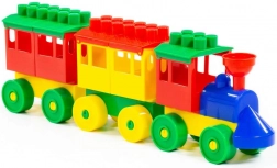 Det farverige togsæt til børn er lavet af holdbar plast og er let at samle ved hjælp af sammenlåsende klodser i forskellige farver. Lokomotivet og vognene giver en fantastisk mulighed for leg og læring. Børn kan: