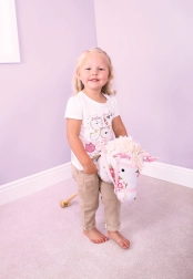 Den lyserøde kæphest fra Bigjigs Toys er det perfekte supplement til børneværelset. Denne legeting giver en fantastisk mulighed for fantasifuld leg, hvor børn kan efterligne ridning.
