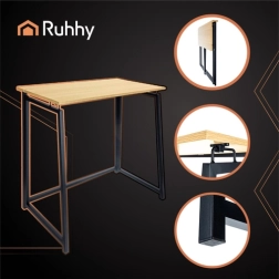 Det kompakte, sammenklappelige RUHHY-bord i industriel stil kombinerer pladsbesparelse, hurtig opsætning på få sekunder og en stabil metalramme med trædekor. Ideelt til hjemmekontor, studier og små lejligheder.