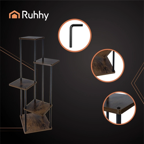 <\div> <\div>Blomsterstanderen RUHHY bringer funktionalitet og stil ind i dit hjem. Med sine 5-nivå konstruktioner kan du afsætte plads til planter på et lille areal med moderne design, der indeholder en metalramme og træhylder. Den solide metalramme kan bære op til 75 kg, hvilket sikrer stabiliteten og holdbarheden af stativet. For gulvets sikkerhed er den udstyret med beskyttelsesfødder, som forhindrer ridser og muliggør justering af stativet.