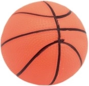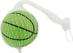 Sjov gummibold med basketballmotiv, diameter 8,5 cm, til børn fra 3 år. Byder på fantastisk hop, behageligt greb og fås i et mix af klare farver. Praktisk pakning i net for nem transport.