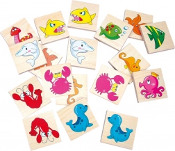 Bino Træ-puslespil Vandverden tilbyder farverige billeder af søde vanddyr, der gør spillet sjovt og intuitivt. Dette puslespil er praktisk pakket i en kasse med skydelåg, lavet af let og stærk krydsfiner.
