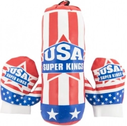 Dette boksesæt til børn er et godt valg til de første skridt ind i boksens verden. Takket være de mindre dimensioner passer det både på børneværelset og til hjemmetræning. Det farverige motiv med det amerikanske flag fanger børns opmærksomhed og motiverer til bevægelse.