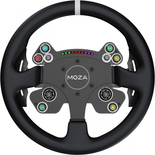 Moza Racing CS V2P leverer en realistisk køreoplevelse takket være en 13-tommer aluminiumsrand og magnetiske kulfiberpadler. Professionelle vil sætte pris på det avancerede Quick Release-monteringssystem og de programmerbare mekaniske knapper.